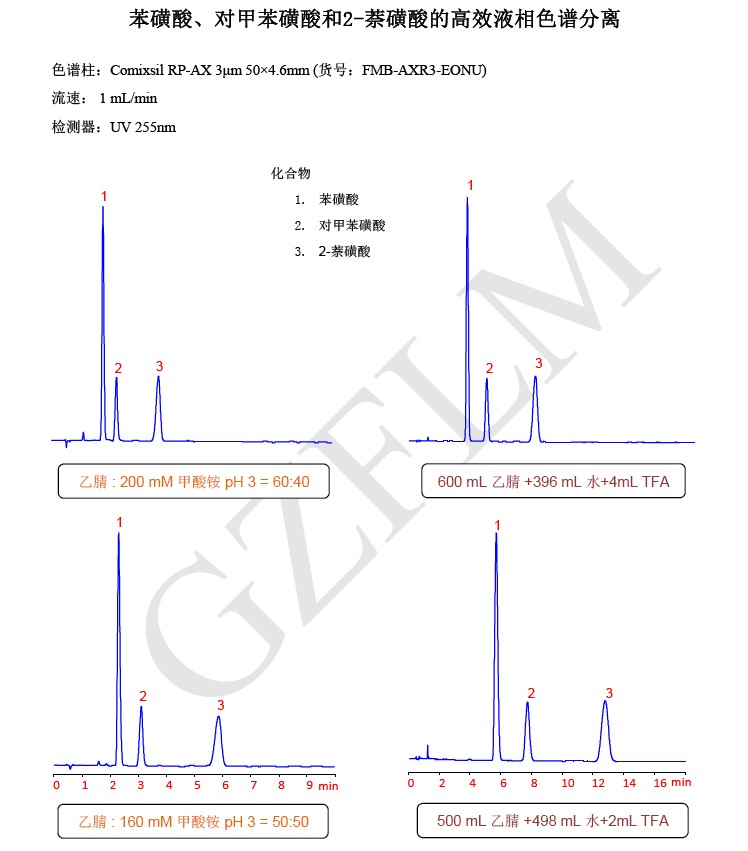 在方法開發(fā)的過程中,我們在物質(zhì)保留過強或者化合物保留不佳的情況下,可以嘗試調(diào)節(jié)流動相中的緩沖液濃度來改變物質(zhì)的保留時間;還可以嘗試用梯度的方式先走低濃度的緩沖鹽或者酸來增強物質(zhì)的保留,再用高濃度的的緩沖鹽或者酸來加速強保留物質(zhì)的洗脫,從而達到將我們需要的化合物分離開來或保留等目的。
