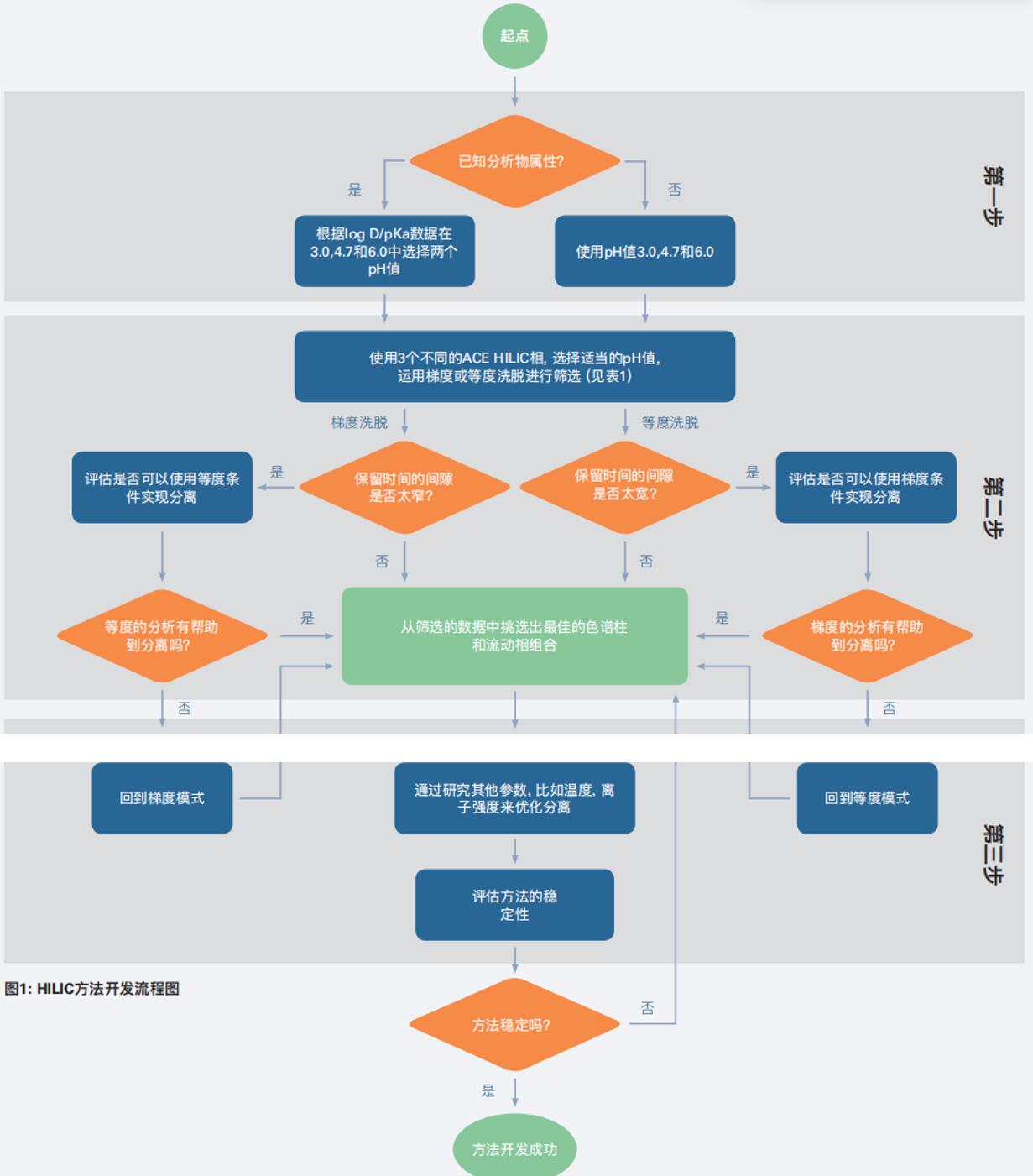 A:結合大極性分析物和Hliic色譜柱的特點,我們建立了一套可行的方法開發流程,可供大家參考。