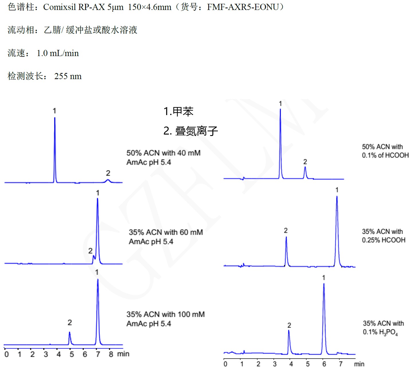 2. Comixsil RP-AX同時保留大極性疊氮離子和疏水小極性甲苯: