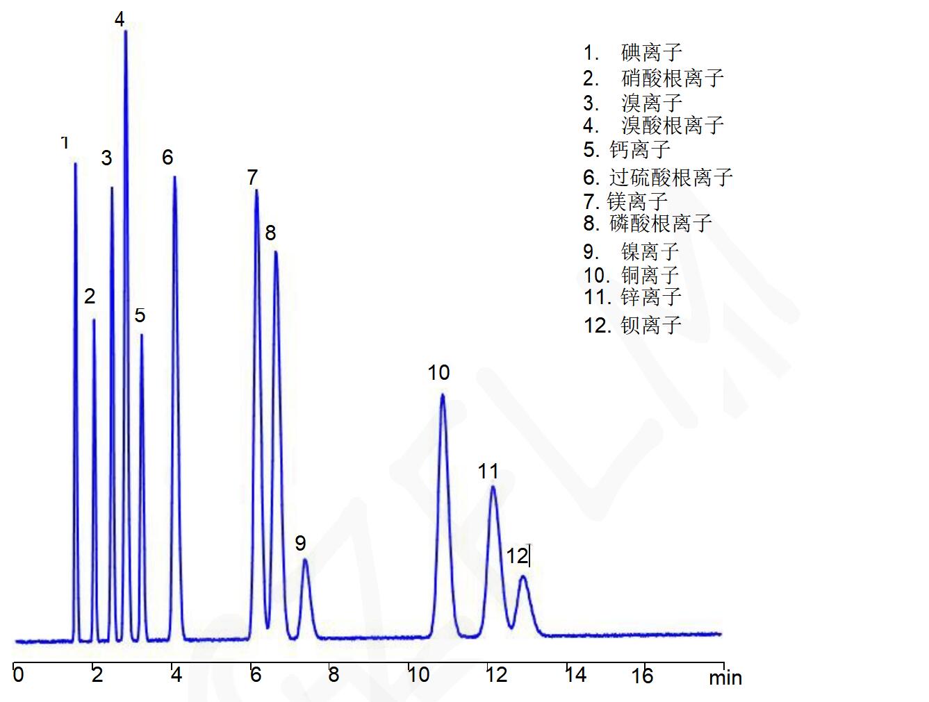 說明:若用此法測定鈣離子時,樣品中需避免存在氯離子,在Comixsil HAC固定相色譜柱中,鈣離子與氯離子將共洗脫。 如果是氯離子存在時的鈣離子的分析,可以采用Comixsil ACRP或Comixsil RP-100等其它固定相色譜柱進行分析。