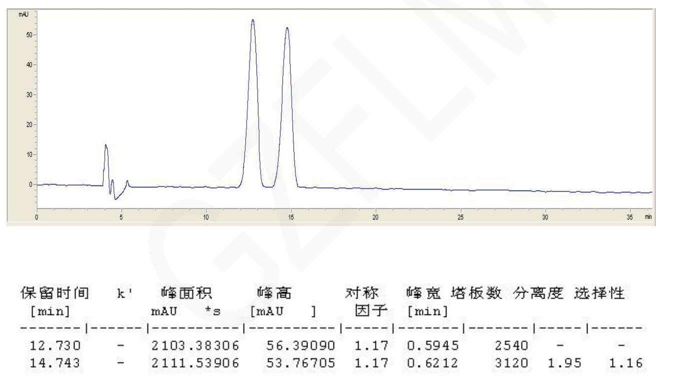 色譜柱:Chiral MZ(2)-RH 5μ 250*4.6mm(貨號: FMG-AC5-B02-R)
