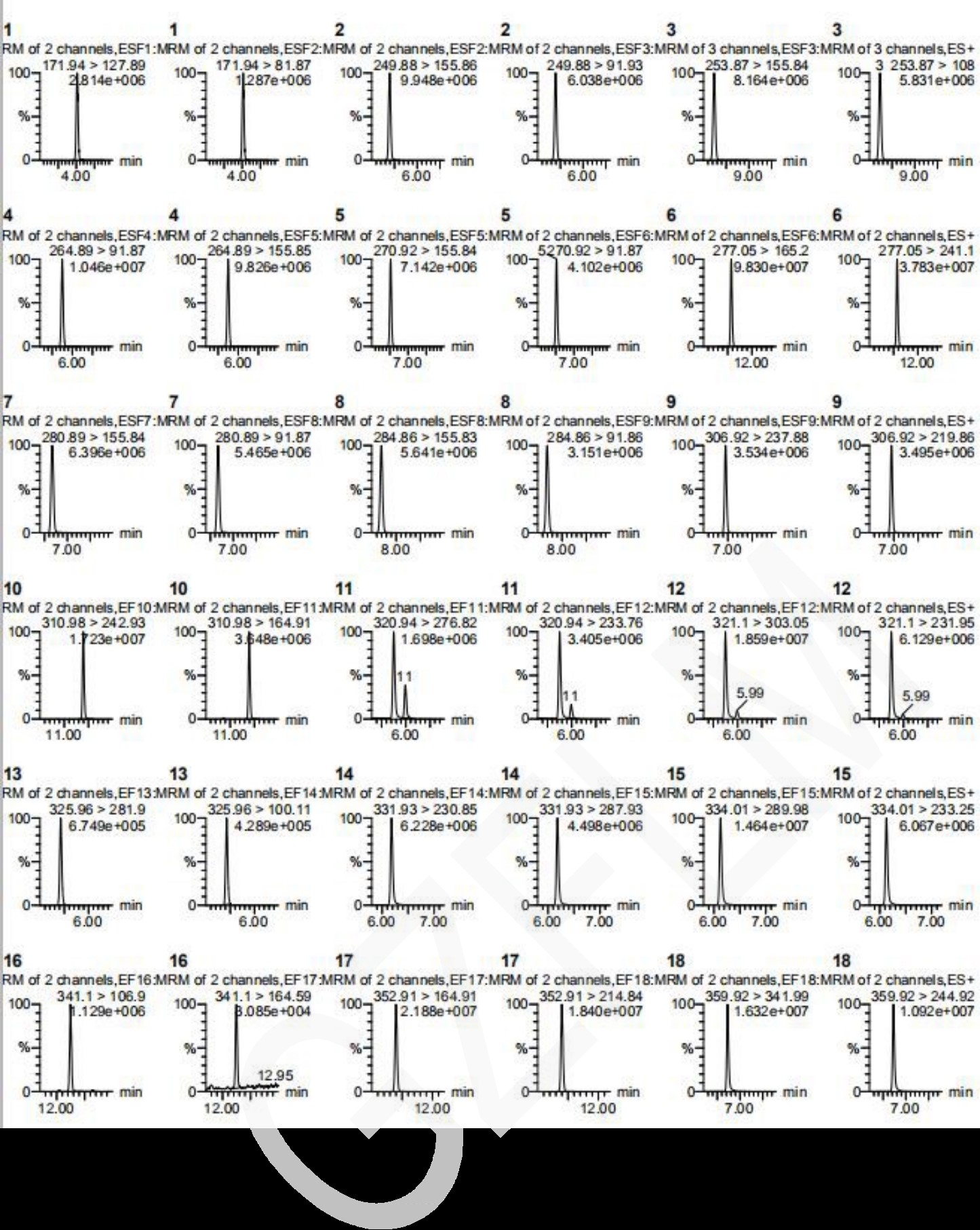 客戶評語:該款色譜柱峰型和分離度優(yōu)秀,可滿足《化妝品安全技術規(guī)范》2015 年版中對 36 種抗感染組分檢驗方法的實驗要求。