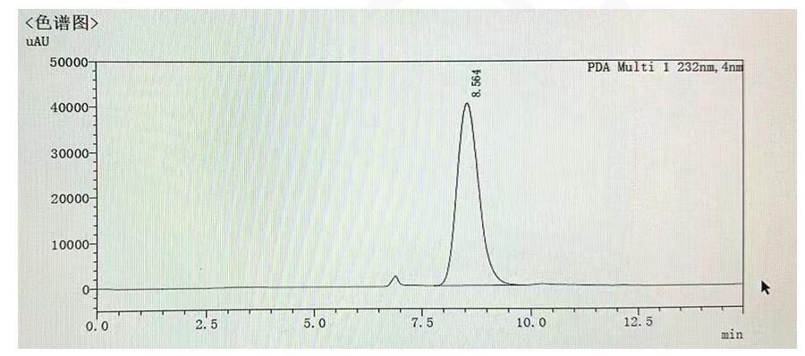 App ID: FLM-M250001 MARS MCa 柱對醫(yī)藥輔料及食品中透明質(zhì)酸鈉含量的測定 色譜柱:MARS MCa 10u 7.8*300mm (貨號:FMH-1130-KONU) 流動相:1%磷酸 流速:0.6 mL/min 檢測波長:232nm 柱溫:40℃ 樣品濃度:1mg/ml 進(jìn)樣量:20ul 方法參照團(tuán)體標(biāo)準(zhǔn): T/SNHFA 012-2021 食品中透明質(zhì)酸鈉含量的測定 稀釋劑:磷酸鹽緩沖液(pH6.0):稱取磷酸二氫鈉(5.1.1)27.4 g、磷酸氫二鈉(5.1.2)8.8 g,置1000 mL 容量瓶中,加水稀釋至刻度,搖勻,得 0.2 mol/L 磷酸鹽緩沖液。 檢測原理:來源于細(xì)菌的透明質(zhì)酸酶在適宜條件下,作用于透明質(zhì)酸鈉β-1,4 糖苷鍵,通過β消除反應(yīng)生成不飽和透明質(zhì)酸鈉雙糖(ΔDiHA),采用高效液相色譜法測定,外標(biāo)法定量。 色譜圖: