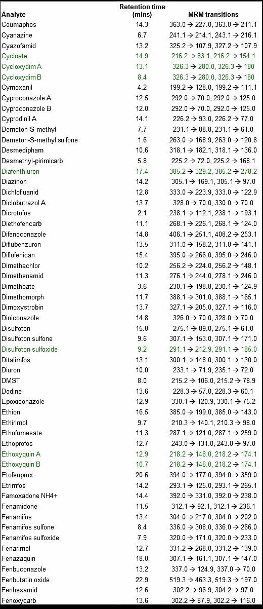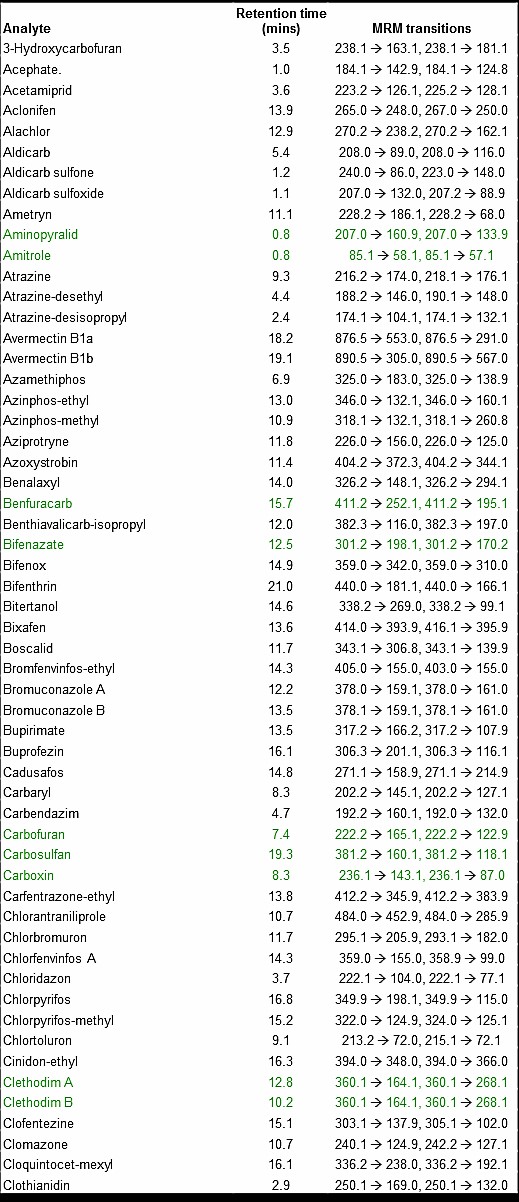 樣品:樣品制備采用QuEChERs方法,用黃瓜基質(zhì)加標0.01mg/kg進行方法驗證。